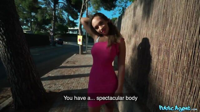 Description:I saw Briana Bandares sitting at a bus stop, and she looked perfect for a casting. I walked up to her and told her I had a camera with me because I was casting models for music videos. For a few euro, Briana agreed to walk with me for a casting, and for a few more, showed me her big boobs in her white bra. She had a great ass, and I saw she was wearing matching panties. I told her I also shot video for an erotic company, and offered her more money to perform a blowjob. Once she sucked my hard dick, Briana got very horny, and asked me to fuck her. I pounded her pussy standing doggystyle, then she rode me on the rocks. When I was ready to finish, Briana stook her tongue out and took my facial!