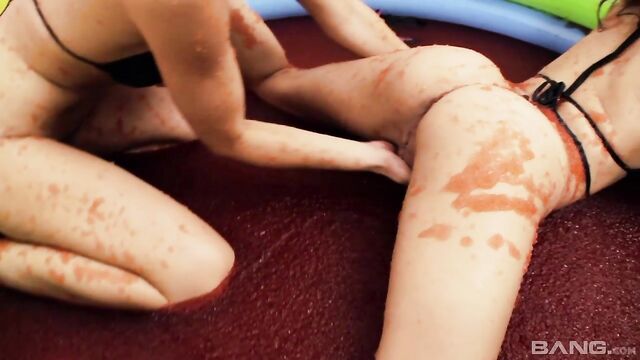 Description:Sammy Jayne and Krystal Webb barely even wrestle in this hot scene because they were so horny for each other! Now you get to see these beauties play finger games and eat all that chocolate covered pussy as they fuck in a pool of jelly.