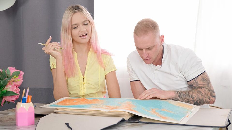 Description:Some people think that private teachers should not look sexy and hot. Novella Night works as a private geography teacher, but she believes it’s her right to look seductive, beautiful, and stunning. After all, this is how she makes her students interested in the subject. Anyway, she tries to tell her student about the seas and rivers of the planet, but he thinks only about the curvy ass he sees when she bends down to lift up her pen. He hugs Novella Night, caresses her beautiful body under her sexy outfit, and talks her into putting the maps away and taking his dick into her hands.