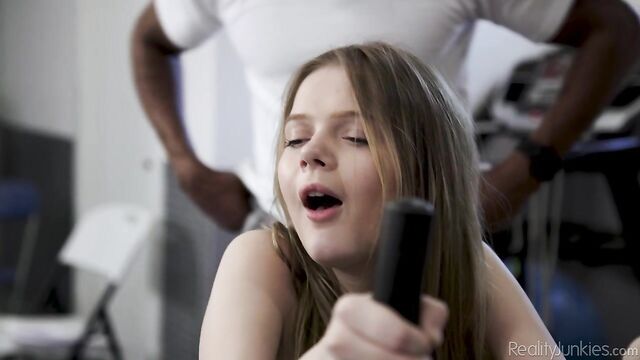 Watch nasty babe get her tight pussy loaded with a massive cock! This is smoking hot play ! Watch her suck and fuck like a pro!