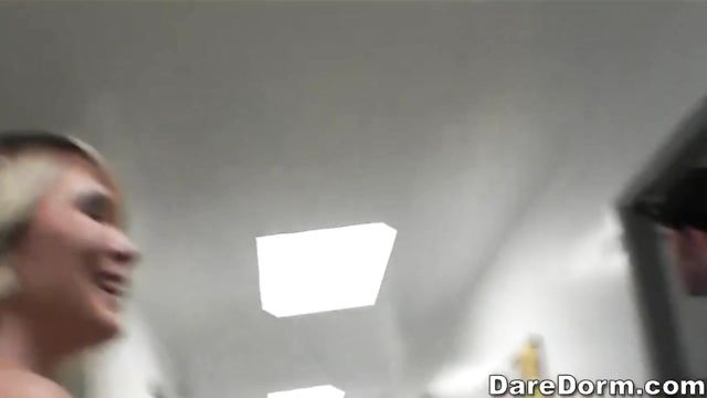 Description:In this Dare Dorm submission a group of students decided to get wet and wild in the hallway of their dorm room. Throw down some plastic sheets and soapy water, get out the bubble makers and water guns and get the ladies to bare all and you have a recipe for a wild party. After some naked sliding down the hallway, one lucky man had a double blowjob going on. That led to a 2 girl doggystyle fuck fest!