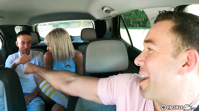 Jessie lives out her fantasy of being double teamed and takes huge loads on her face.