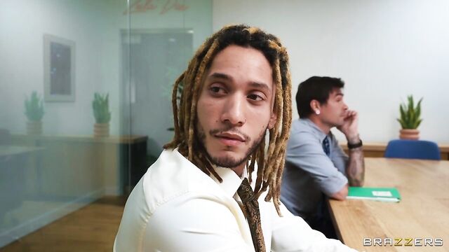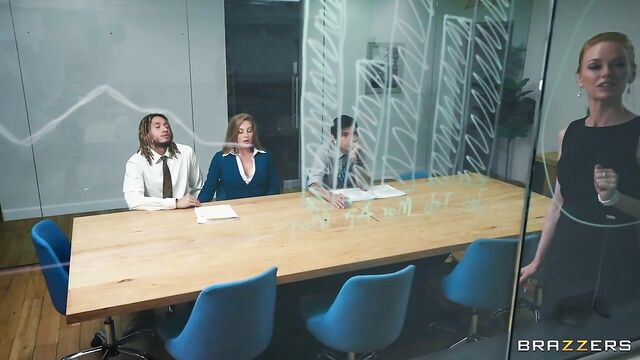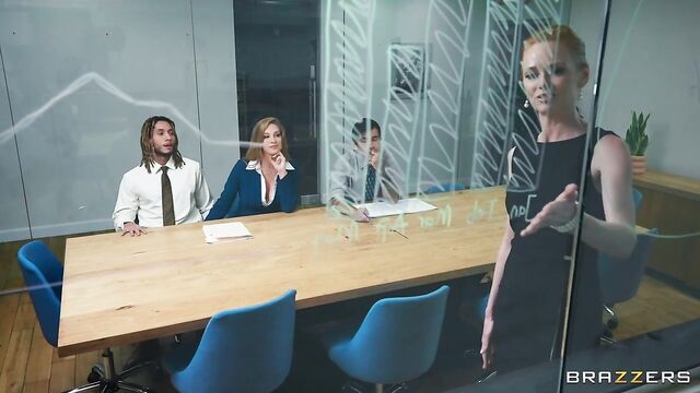 Descrição: Annie King works in an office. Some days she feels a little bit slutty, and on those days, she takes her pick of the young men around the office. Today's lucky guys are Derek Savage and Nick Strokes, who both end up in the bathroom with Annie, while a boring meeting drones on in the next room. Annie gives both guys a hot double blowjob, before letting them tag team her pussy!