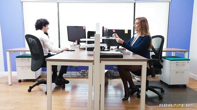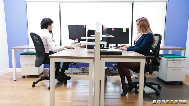 Description:Annie King works in an office. Some days she feels a little bit slutty, and on those days, she takes her pick of the young men around the office. Today's lucky guys are Derek Savage and Nick Strokes, who both end up in the bathroom with Annie, while a boring meeting drones on in the next room. Annie gives both guys a hot double blowjob, before letting them tag team her pussy!