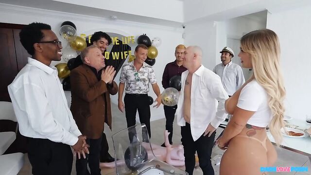 Descrição: Welcome to Dads Love Porn! This is where we give lucky dads a chance at fucking their favorite pornstars. Meet Jason, he’s getting married soon and his buddies decided to give him big surprise before his big day. They decided to contact BangBros to help him out. As him and his buddies partied, we surprised him with Kali Roses. She was down to show him a good time. At first, he thought she was just there to strip but we soon explained everything to him and he was down. On the day before his wedding Kali gave him night he’s never going to forget. The chance to fuck a pornstar doesn’t come around that often. He got some head in front of his friends before he sent them packing. He took Kali over to the couch for the real fun to begin. He fucked his first ever pornstar pussy in several different positions before busting all over her tits.