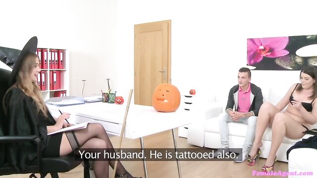 Description:Don and Vanny (37 mins). It was approaching Halloween so I decided to don my sexy witches outfit and decorate the office with some pumpkins. When the casting couple arrived I was a bit disappointed that they didn't even mention my outfit or the effort I'd put into the office, but I guess it's not everyone's favorite time of year. We proceeded with the interview and they seemed like an open minded married couple and I was able to convince them to do a casting for me in return of which I would give them plenty of work. They seemed a little nervous at first but she was soon on her knees stuffing her husbands cock into her mouth. I began to give them directions on what to do next, like trying the 69 position and for the husband to lick his wife’s pussy. Watching these two fuck on my couch was getting me really turned on, but married couples often don't want me to join in. So I pulled my favorite toy and sat down on the couch next to them. I told them to carry on and as I watched her ride her husbands cock, moaning with satisfaction, I slipped my dildo into my wet pussy. I was so turned on and masturbating next to this horny couple was pushing all of my buttons. I was soon contorted in ecstasy on the couch as I fucked myself to a glorious orgasm. As I sat there bathing in the glow of my orgasm, I watched them continue to fuck. They weren't a very vocal couple but they were really enjoying themselves on my couch.Then, without warning, his body went all stiff as he blew his load deep inside her tight pussy. I asked him if he had cum inside his wife’s pussy and he didn't reply, but when he pulled out two massive loads of cum came dripping out of her pussy. It was such a beautiful sight, there's nothing sweeter then a husband giving his wife a creampie for a Halloween treat.