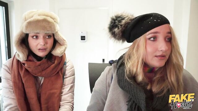 Description:Hot French backpackers Chloe Chevalier and Crystal Cherry are looking for somewhere to stay, but everywhere is full. They really don’t want to go back outside in the cold, so they get on their knees and beg hostel worker Steve Q to give them a room. The pretty Euros are desperate and willing to do anything for a nice warm bed, even if it means sharing one with Steve! To show their appreciation, Chloe and Crystal take turns sucking on their host’s big cock, with tattooed beauty Crystal treating him to a sexy rimjob, and then Steve slides down the naughty nymphs' matching pink thongs and spanks them! When it’s time to fuck, the grey-haired hunk bangs Chloe from behind in doggy position before petite babe Crystal puts her small, pierced titties on display as she rides Steve in cowgirl. Afterwards, Chloe takes her place, and then once the gorgeous blonde has finished bouncing her curvy bum on Steve's dick, she does some 69ing with her BFF while the well-hung stud continues fucking their tight holes. To finish, Steve laps up the Euros' sweet pussy juices before penetrating Chloe in an enthusiastic side fuck, pulling out just in time to shower the curvy babe in his cum!
