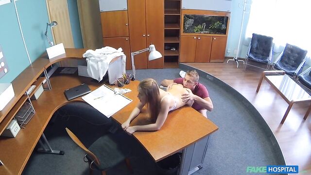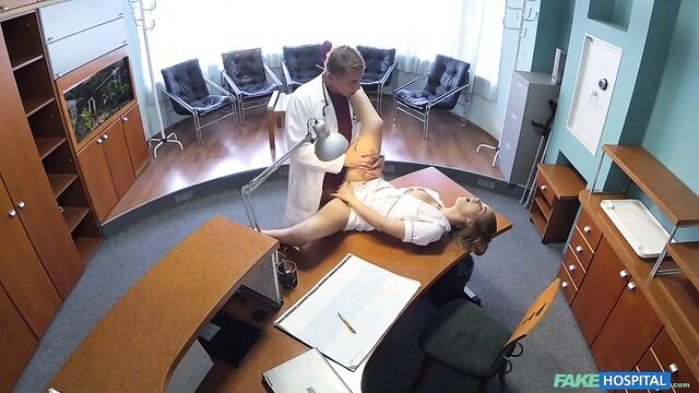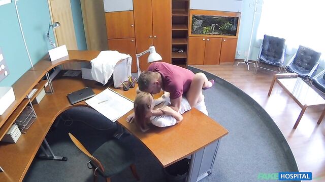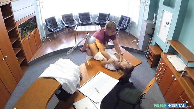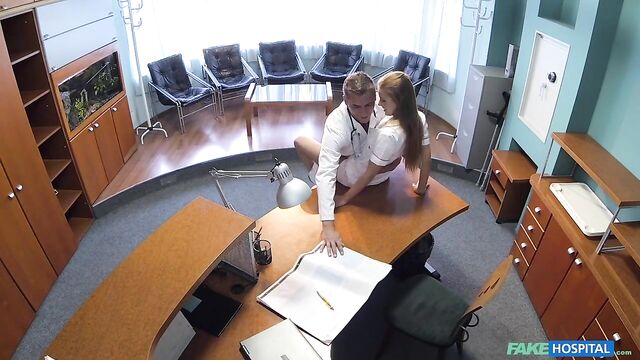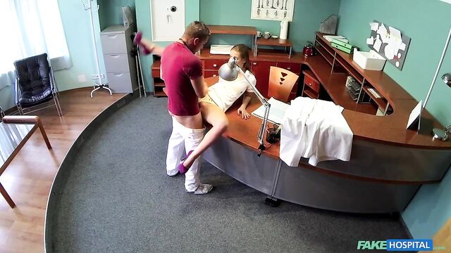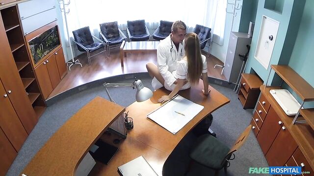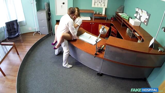 Description:Every time I walk into a room with the hot nurse that works for me, I want to pull aside her knickers and fuck her sweet pussy so badly. Today was no different, expect the room was empty, no patients booked for appointments and many staff were on holidays. If there were ever to be an opportunity this was it. So I sparked up a conversation and quickly found out she had recently been dumped by her boyfriend and was feeling quite lonely. Whilst I have a wife, home life is anything but a piece of cake at the moment. We both realised quite quickly that we fancied each other, so I went in for a kiss, which was well received. Within minutes this had progressed to me eating her pussy on the desk, and not long after I was fucking her hard and fast over the same desk. The thought of someone finding us both fucking was a massive turn on. I finished up by unloading a huge load of cum inside her pussy, which slowly oozed out over the reception floor. It was at that second a patient knocked heavily on the door who had been waiting outside. Bollocks! We clambered about getting our clothes on as quickly as possible, and I then sat at the desk waiting for the patient to come in. To be continued...