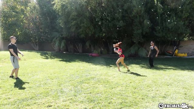Description:Vanna plays some football with the guys filled with sexy teases and flashing. She leads them to the bedroom to get double teamed and take huge loads all over her face.