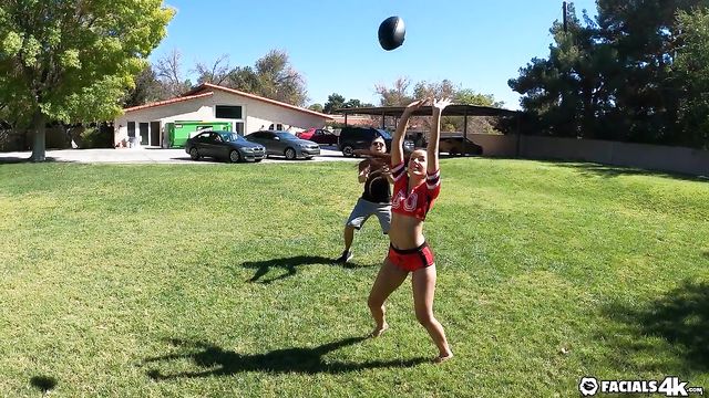 Descrição: Vanna plays some football with the guys filled with sexy teases and flashing. She leads them to the bedroom to get double teamed and take huge loads all over her face.