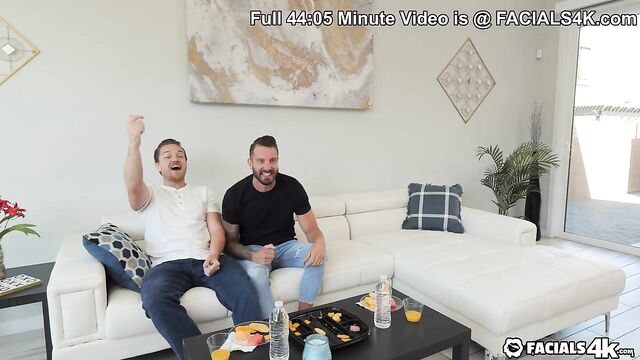 Description:Dakota is trying to study but her roommates are being too loud for her to concentrate. She decides to play with her pussy to relieve stress when her roommates catch her in the act. They agree to be quiet if they can fuck and facial her.